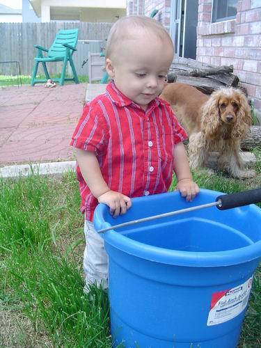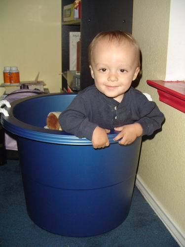 Robbie in his toy bucket: