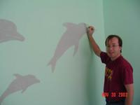 We spent some time over Thanksgiving weekend decorating the nursery. We painted some dolphins, a whale and a submarine with the help of an overhead projector and stenciled some fish and seahorses. It still needs some finishing touches, I'll post more photos once it's all done.