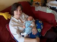 It was a very fast labor and I'm glad we got to the birthing center when we did. I got quite worried when their phone wasn't working, I was afraid I'd have to go to a hospital and be delivered by a doctor I've never met. We later found out that the center had just switched to Southwestern Bell and their pager service went down. They now put an emergency number on all their hand-outs and the website so this wouldn't happen again. I'm glad everything worked out ok and we were able to reach them after all.