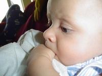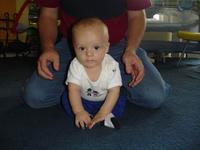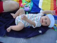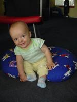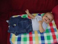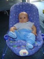 Robbie is getting to a stage where he won't sit still. He's always trying to sit up by himself, or reach for his toes (and fall over), or crawl (which he can't do yet). He sometimes gets frustrated that he's not more mobile.