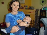 So, yesterday I bought some rice cereal. We prepared some in a bowl (you mix it with breast milk and it has a very liquid consistency), got the video camera ready and started to feed Robby. Jef took a spoon and put it in Robbie's mouth. Robbie made an unhappy face and started to whimper a bit. We decided to give him some milk first so he's not too hungry to try the new food. We then tried a spoonfull again. Again an unhappy face. We managed to feed him a few spoonfullls before giving up. A few minutes later he spit it all up. We gave him a bottle of breastmilk and he drank it clutching the bottle with both hands so we wouldn't take it away again. It looks like Robbie isn't ready for solid food yet. We'll try again next month. :)