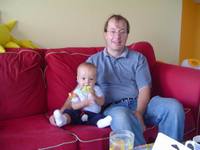 We bought Robbie a bigger car seat yesterday because he outgrew his baby one. It's a convertible car seat that he can now use for as long as he needs one (until 4 years old). Unfortunately it sits kind of upright and is not good for napping, and it's not removable like his previous one, so he can't fall asleep in the car and be carried in the car seat to the supermarket or restaurant. That means the days of planning shopping trips so he falls asleep on the way there are over. That's a shame because Robbie has decided in the past month or two that car trips over 15 minutes long are not fun and starts to fuss. So, getting him to nap in the car was a great way to avoid a grumpy baby during a car trip. Now the only way we can keep him from crying the entire trip is to sing lullabyes or for Jef to whistle. Fortunately most shops are pretty close so it doesn't get to that. It's just the longer trips to visit friends that are a problem.