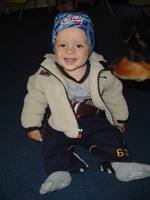 Robbie is also making some progress with eating solids. He'd been eating things like cheerios for a month or two, but lately I'm also getting him to try other finger foods. He's slowly getting used to eating things like pieces of banana or cooked carrots. At first he'd make a funny face when he'd have a piece of non-pureed food in his mouth. The same food like carrots that he likes pureed, he'd reject when given in pieces (cooked until it's very soft, much softer than the cheerios he was eating already). But lately he's accepting them better. That's a good thing because it's getting more difficult to feed him pureed food from a jar with a spoon. He keeps grabbing for the spoon so he can take it and bang it on the table.
