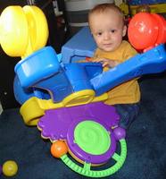 1 fisher price learning home - it's the front part of a house with a door Robbie can open and crawl through, a window to open, a flower, a rain spout that you can trow balls into, a radio that plays 4 songs, a door bell, a light switch, a play clock that chimes when you turn it, house numbers you can turn, a mailbox with plastic letters, and much much more. Everything plays music when you interact with it.